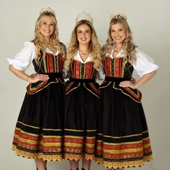 O legado de quatro décadas da Festa da Alegria está presente nos trajes do trio de soberanas da 40ª Oktoberfest de Santa Cruz do Sul, formado pela rainha Rafaela Nicknig e pelas princesas Amanda Regina Werner e Sofia Cristina Pretzel. Os vestidos, oficiais e de passeio, foram apresentados à comunidade em evento realizado na tarde desta sexta-feira, 29, em frente ao Palacinho, na Praça da Bandeira. Os modelos, desenhados e produzidos pelo Atelier Joana Tornquist, traduzem em cada detalhe o espírito do tema desta edição: Reviva as Memórias, Celebre as Tradições. Cores, texturas e acabamentos se unem para narrar a história que conectam passado e presente, em uma homenagem ao patrimônio cultural que molda a identidade de Santa Cruz do Sul.