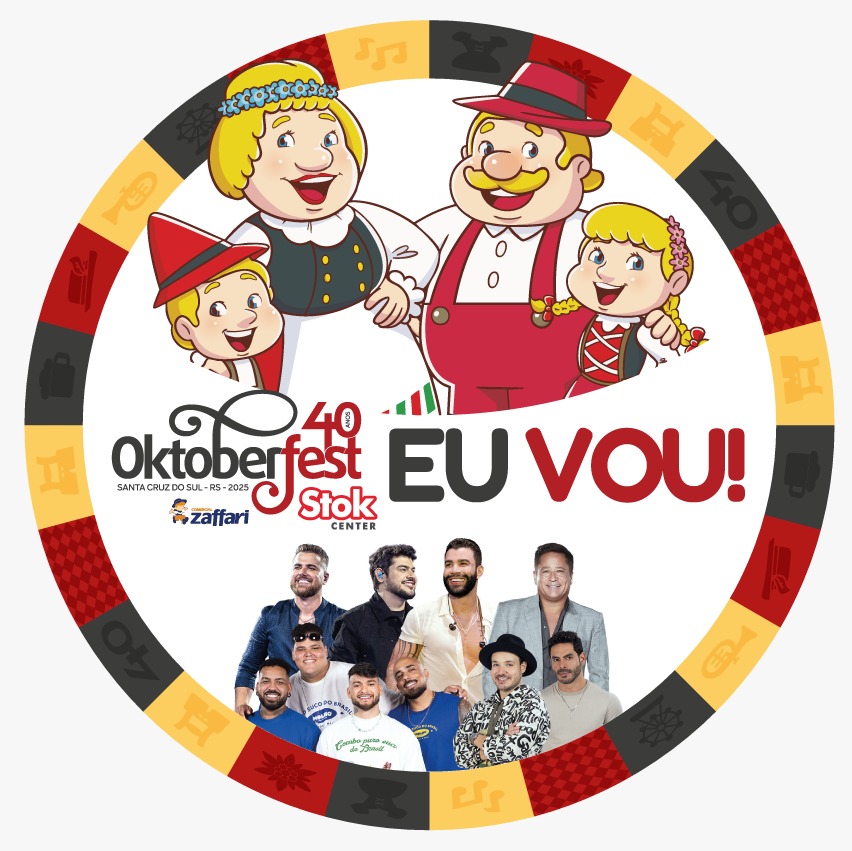 A 40ª Oktoberfest – Reconhecida como a maior festa germânica do Rio Grande do Sul, a Oktoberfest de Santa Cruz do Sul chega à sua 40ª edição com o tema “Reviva as memórias, celebre as tradições”. A programação contará com música típica, apresentações de dança, desfiles temáticos, jogos germânicos, feira da agricultura familiar e a Feirasul, além de uma ampla estrutura gastronômica e de lazer. A festa acontece de 9 a 12, 16 a 19 e 23 a 26 de outubro, com shows nacionais de Zé Neto & Cristiano (11/10), Gusttavo Lima (16/10), Leonardo (18/10), Israel & Rodolffo e Menos é Mais (25/10).